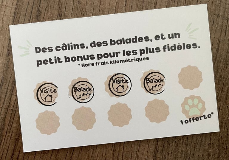 Votre 10ème prestation (visite ou balade) est systématiquement offerte avec notre carte de fidélité !